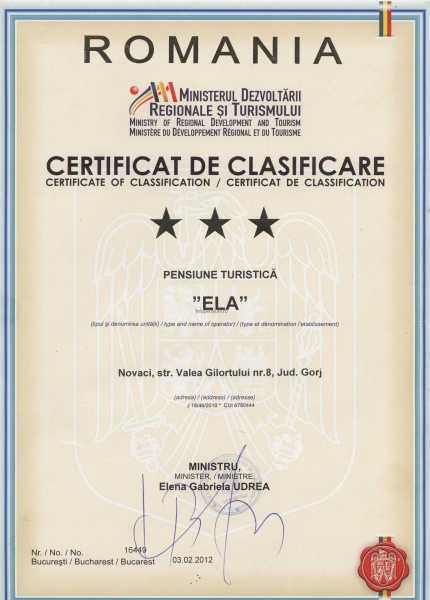 Pensiunea Ela Novaci 3*** din
